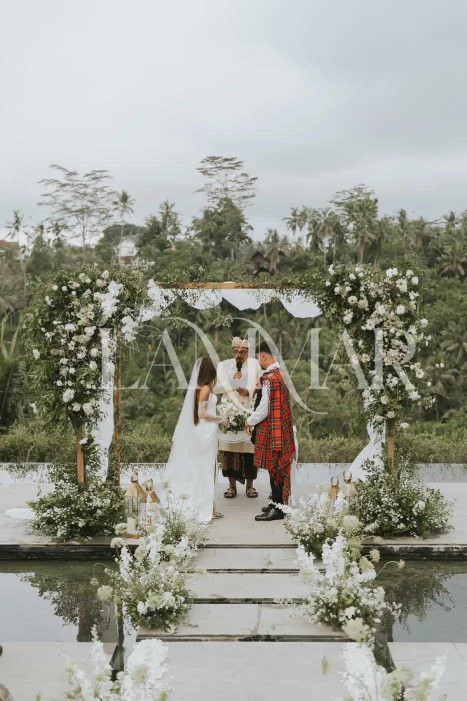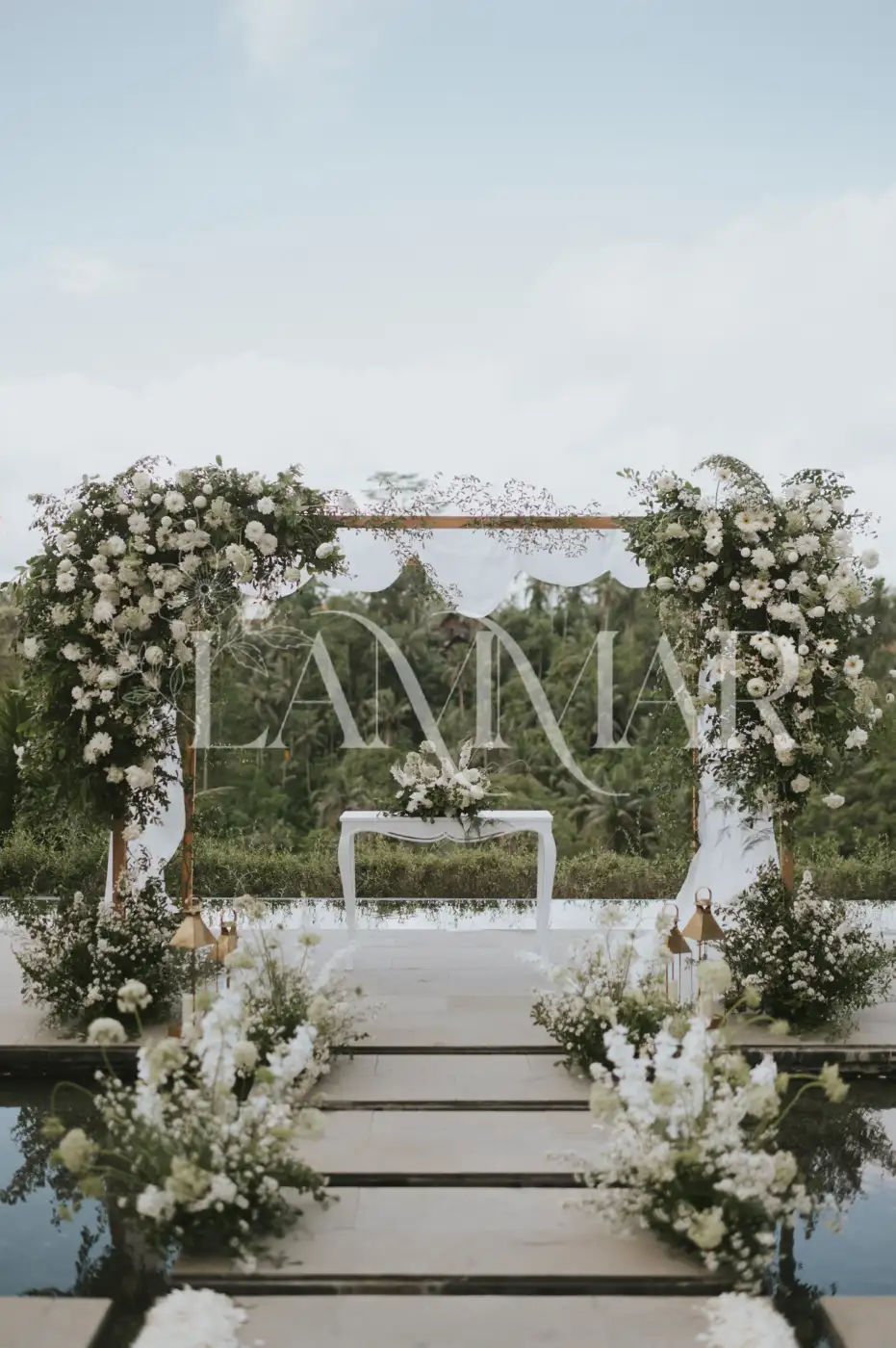 Martyna & Cammie’s wedding at Jannata Resort Ubud beautifully highlighted the elegance of white and green wedding flowers. The floral arrangements combined classic white blooms with natural greenery, creating a romantic and timeless atmosphere. Surrounded by the lush tropical jungle, the ceremony felt intimate yet grand, perfectly reflecting the couple’s love story. Every detail was carefully curated to enhance the venue’s natural beauty, turning this destination wedding into an unforgettable experience for both the couple and their guests.